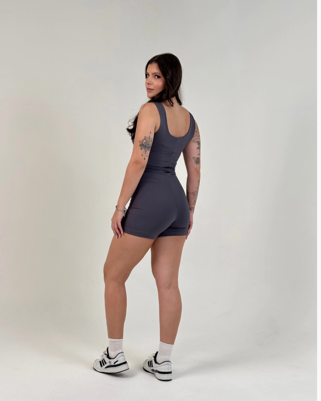 Macaquinho feito de poliamida todo duplo ideal para treinos. Não possui bojo.